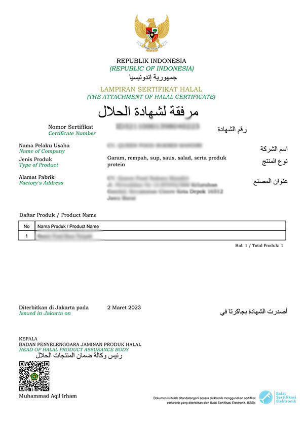 - 印尼清真认证局BPJPH所颁发的官方证书,不再设置有效期。